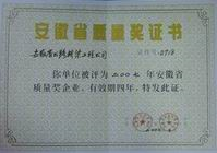 安徽省质量奖证书